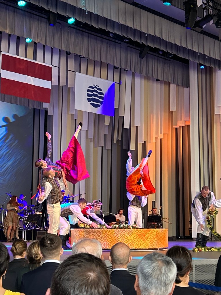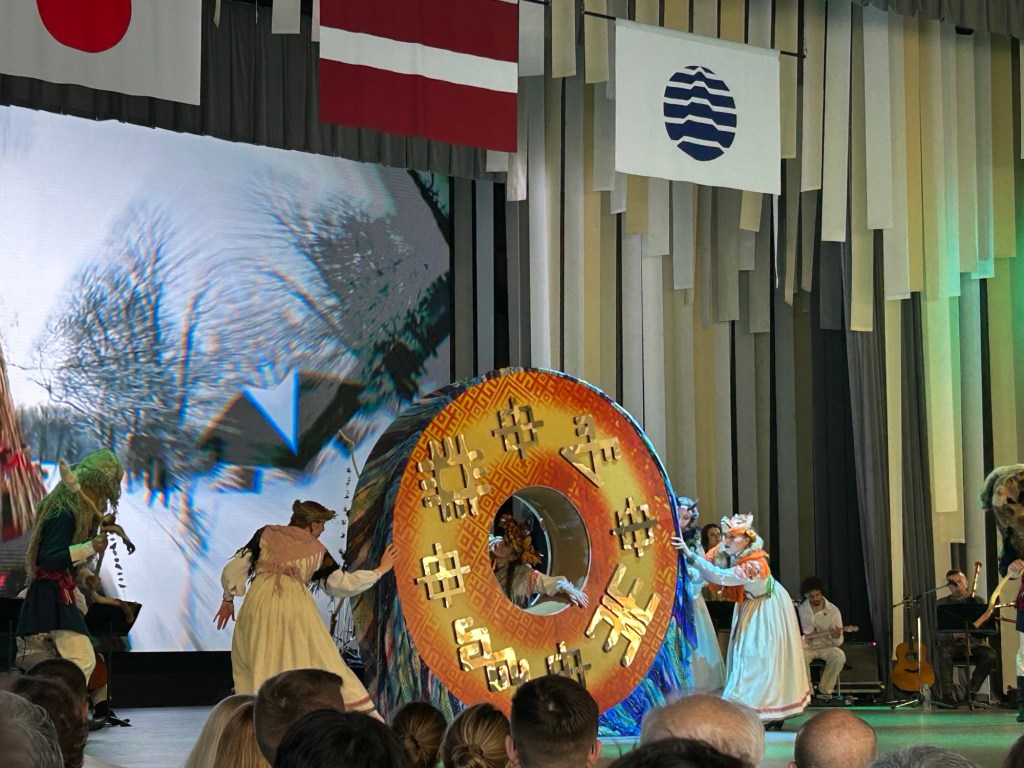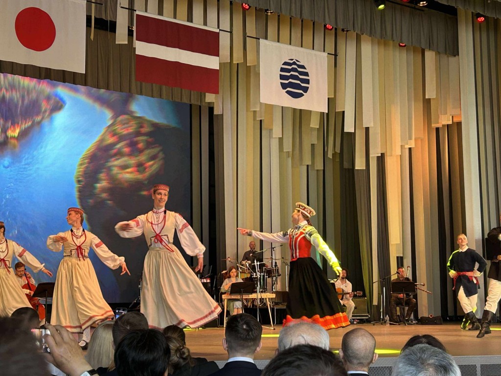 The grand performance “Resonance – ATBALSS” featured a fusion of Latvia’s traditional music, contemporary music, and electronic sounds, with the folk dance troupe Vektors—dressed in traditional costumes—expressing the four seasons through dance.